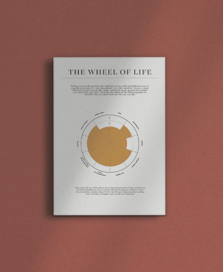 If you’ve never heard of this tool before, The Wheel of Life is a popular tool used to assess and improve balance and satisfaction in life. It involves considering different areas of life that are important to you and ranking each of them on a scale of 1 to 5 or 10. Once completed, you’re then able to see a visual representation of your life, what areas you are satisfied with and what areas you should put more focus on to feel more fulfilment and balance.